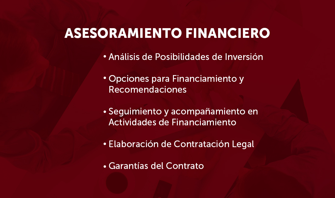 En paralelo con el punto anterior, se desarrollaría la parte financiera de ser necesaria y en donde ofrecemos el mejor análisis para la obtención de préstamos relacionados, recomendando instituciones con el perfil adecuado en cada caso, incluyendo el acompañamiento para la elaboración y preparación de documentos necesarios para el trámite. Se diseña y presenta Flujo de Efectivo adecuado y en beneficio de nuestro cliente.